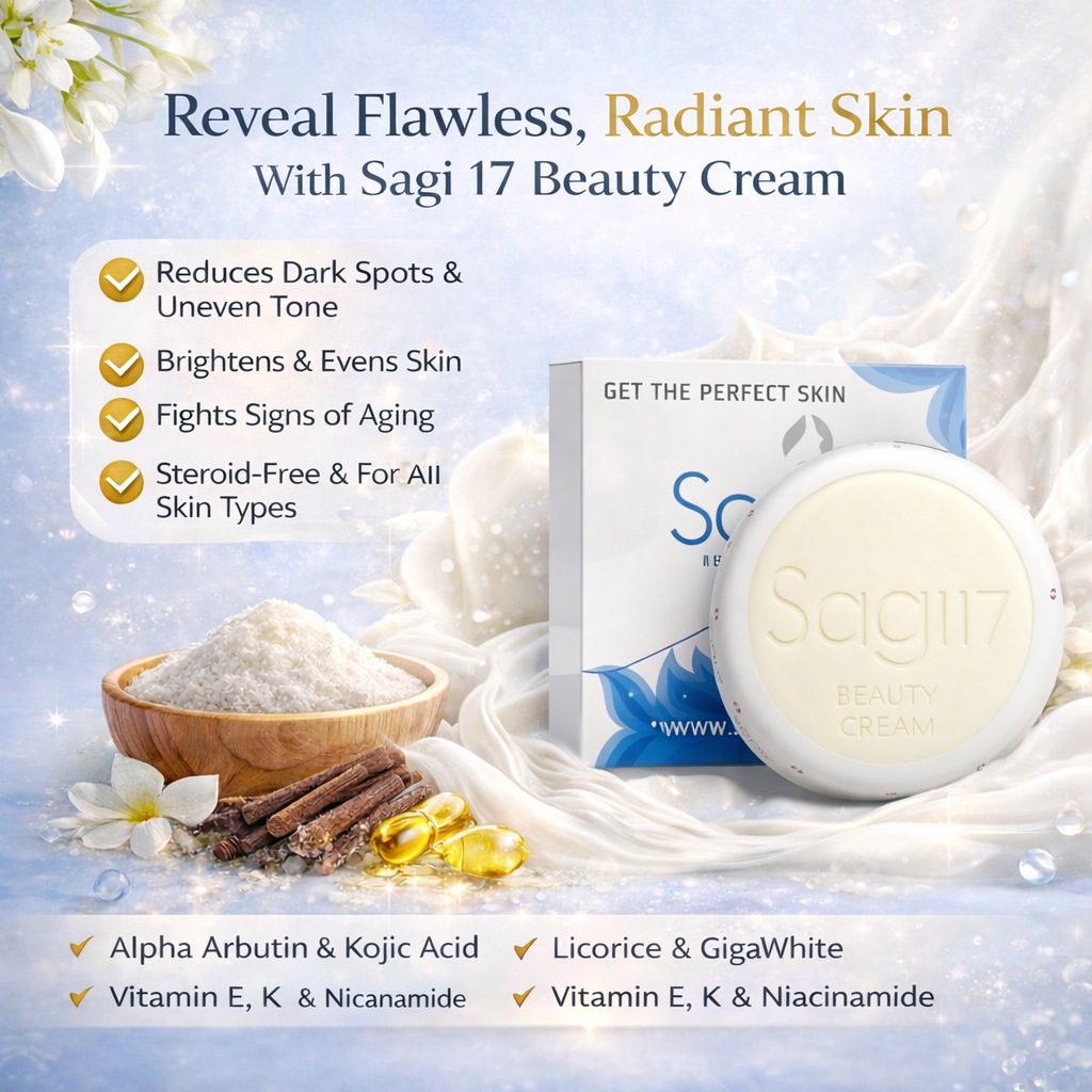 Transform your skin with Sagi 17 Beauty Cream, specially formulated for daily use to bring out your natural radiance. Perfect for all skin types, this cream helps fight dark spots, uneven skin tone, and signs of aging while giving your skin a fresh, bright, and healthy glow.